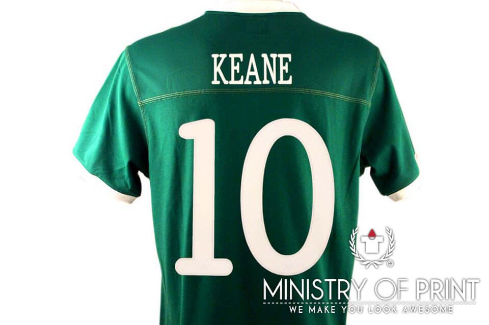 It is commonly used for names, numbers, and simple graphics, especially in team jerseys. The prints are long-lasting and designed to resist fading, making them suitable for regular wear.